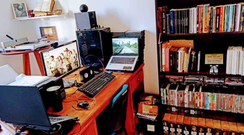Aqui é o meu local de trabalho, onde passo horas do meu dia produzindo e investindo o meu tempo. Já o chamei de Escritório, Espaço Criativo e Estação de Trabalho. Porém, desde setembro de 2024, uma semana após minha mãe ser recolhida para o Senhor, ele recebeu um novo nome: Escritório Luci C. Marcondes. Com direito a um cartaz, fotos e pertences dela. Uma singela maneira de lembrar e homenagear aquela que sempre acreditou em mim, que investiu e apoiou cada passo do meu caminho, seja como escritor ou como pastor.
